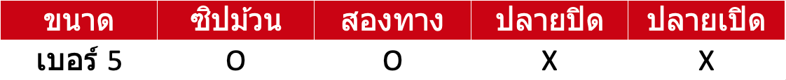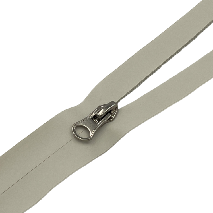 5. ซิปกันน้ำ (Waterproof Zipper) เป็นซิปไนลอนที่มีคุณสมบัติกันน้ำ /กันฝน โดยการใช้งานเส้นซิป จะต่างจากการใช้งานซิปชนิดอื่น เนื่องจากต้องกลับนำด้านที่กันน้ำไว้ด้านนอก และให้ฟันซิปอยู่ด้านใน โดยวัสดุเคลือบผิวเพื่อให้กันน้ำได้มีหลายประเภท แต่ที่นิยมใช้คือ TPU ซึ่งเป็นโพลีเมอร์ชนิดหนึ่ง มีความทนทานแข็งแรง และยืดหยุ่นสูง